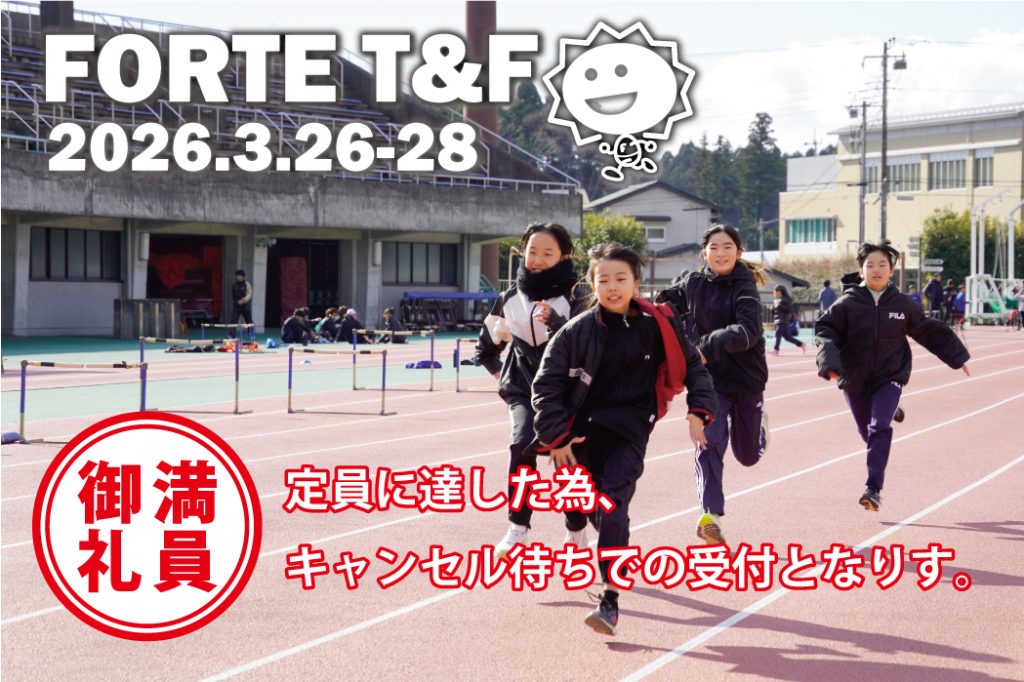 ※上記の申込ページにアクセスできない場合、または申込操作に失敗した場合は、申込必要事項をご連絡させていただきますので、cs@forte-ltd.com宛に「陸上合宿申込希望」と明記し、メールにてご連絡ください。